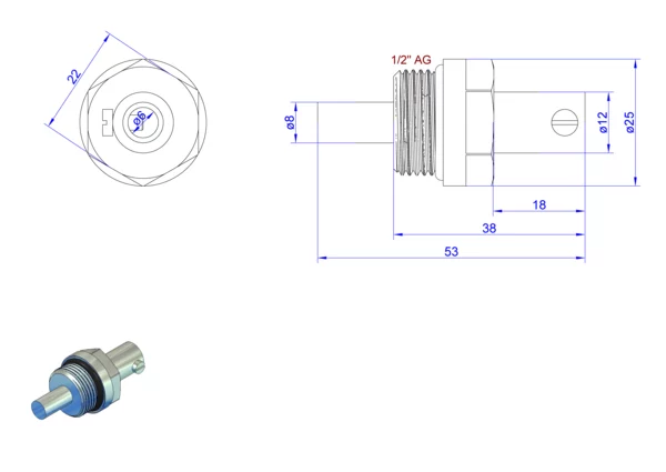 strawa Tauchhülse 1/2'' AG 6,3 mm für Weiche VA,BxHxT: 25 x 53 x 25 mm