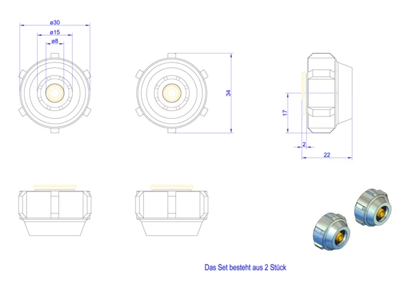 Artikelabmessung: B x H x T: 33 x 25 x 33 mm