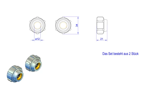 - Rippenmutter (Pressmessing vernickelt) SW 30