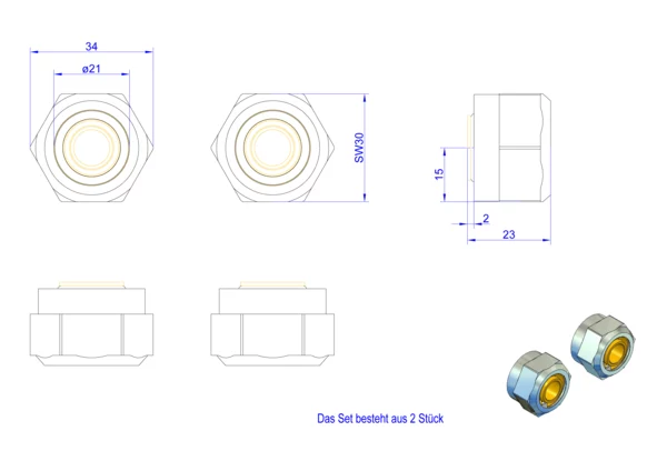 Artikelabmessung: B x H x T: 33 x 25 x 33 mm