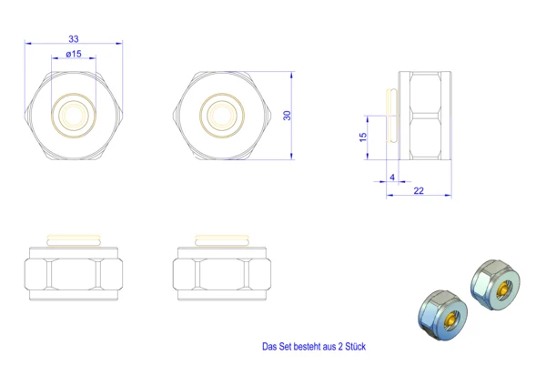 Artikelabmessung: B x H x T: 33 x 25 x 33 mm