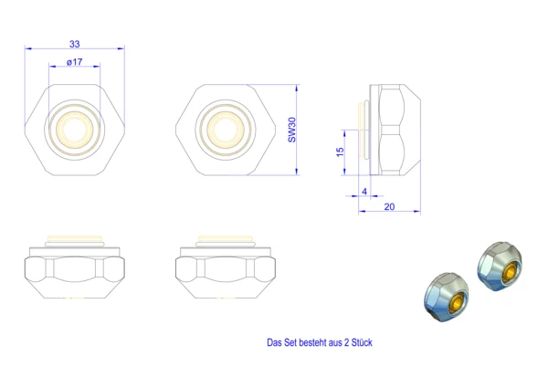 Artikelabmessung: B x H x T: 33 x 25 x 33 mm