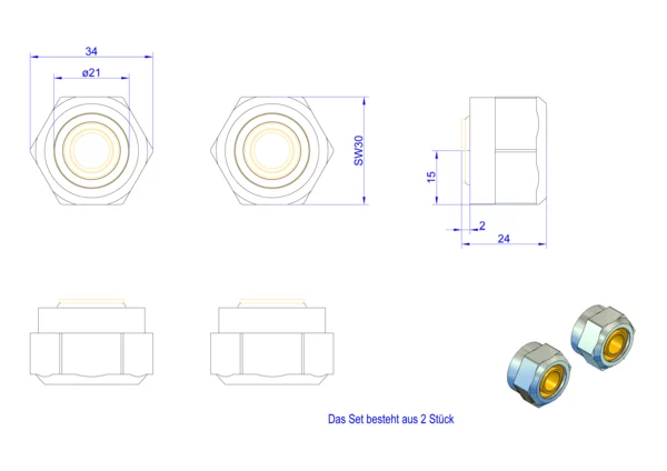 strawa Klemmverschraubung-Set KLV 20,0x2 MKV,BxHxT: 33 x 25 x 33 mm