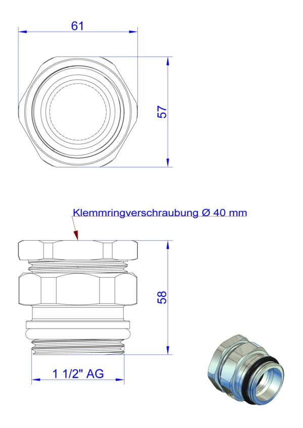 strawa Klemmverschraubung KLV 1 1/2'' AG x 40 V2A,BxHxT: 60 x 57 x 57 mm