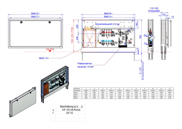 strawa Comfort-Regelstation FBR-S10-18-H-C69 5 Hkr.,BxHxT: 1200 x 775 x 122 mm, Systemtr. m. Festwert 20-50°C + Pumpe, horz. AG o. WMZ, Verteiler mit DFA min/max + THV für EGO-Regelantr., Comfort-UP-Schrank m. Frontbl. RAL 9016