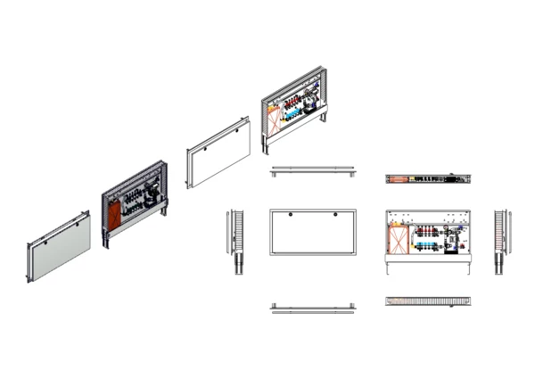 Die Regelstation für Flächenheizung ist mit einer Systemtrennung und einer Festwertregelung 20-50 °C ausgestattet. Die im Unterputzschrank montierte Regelgruppe umfasst eine Umwälzpumpe, einen Edelstahlverteiler mit absperrbaren Durchflussanzeigern und Ventileinsätzen für EGO-Schnellverschluss, sowie eine horizontale Anschlussgarnitur ohne Wärmezählerverrohrung. Es gibt Platzhaltungen für eine Klemmleiste und EGO-Regelantriebe.