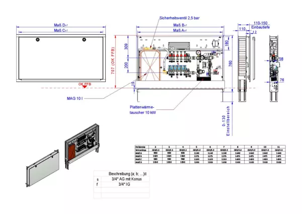 strawa Comfort-Regelstation FBR-S10-18-H-C69-EGO 13 Hkr.,BxHxT: 1500 x 775 x 122 mm, Systemtr. m. Festwert 20-50°C+Pumpe, horz. AG o. WMZ, Verteiler m. DFA min/max+THV für EGO-Regelantr., vorm. EGOs+Klemml.+Vorverdr., CUP-Schrank m. Frontbl. RAL9016