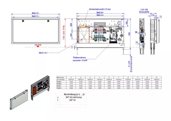strawa Comfort-Regelstation FBR-S10-18-V-WMZ-C69-EGO 8 Hkr.,BxHxT: 1500 x 775 x 122 mm, Systemtr. m. Festwert 20-50°C+Pumpe, vert. AG m. WMZ, Verteiler m. DFA min/max+THV für EGO-Regelantr., vorm. EGOs+Klemml.+Vorverdr., CUP-Schrank m. Frontbl. RAL 9016