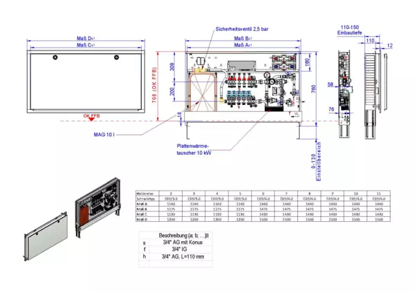strawa Comfort-Regelstation FBR-S10-18-V-W2-WMZ-C69-EGO 10 Hkr.,BxHxT: 1500 x 775 x 122 mm, Systemtr. m. Festwert 20-50°C+Pum, vert. AG m. WMZ, Verteiler DFA min/max+THV für EGO., vorm. EGOs+Klemml.+Vorverdr., WZ-TW kalt+warm, CUP-Schrank RAL 9016