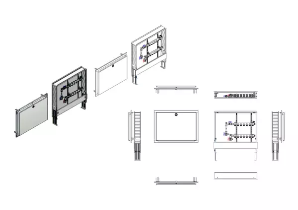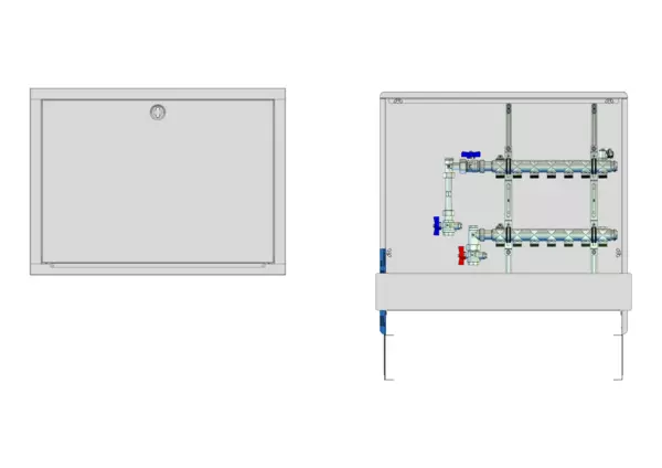 Die Anschlussstation ist für Heizkörperanschlüsse geeignet. Hydraulisch können die Heizkreise in der Station nicht abgeglichen werden. Im Standard-Unterputzschrank mit Frontblende in weiß RAL 9016 mit einer Einbautiefe von 80 bis 120 mm ist ein Edelstahlverteiler ohne zusätzliche Regulier- und Absperreinbauten schallentkoppelt montiert. Eine vertikale Anschlussgarnitur mit Wärmezählervorbereitung 3/4" Länge 110 mm und Fühleranschluss 5-5,2 M10x1 im Vor- und Rücklaufkugelhahn ist montiert.