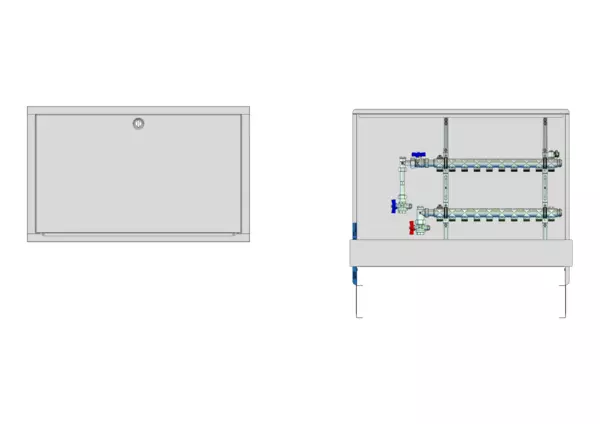 strawa HK-Anschlussstation H 52-WMZ 10 Hkr.,BxHxT: 900x725x122 mm, vert. AG m. WMZ, Verteiler ohne Einbauten, Standard-UP-Schrank mit Frontblende in RAL 9016