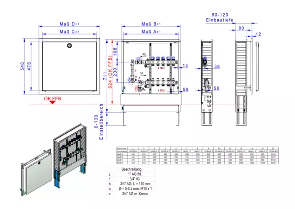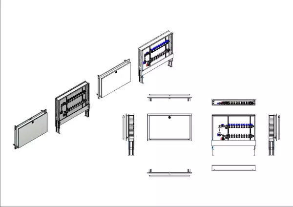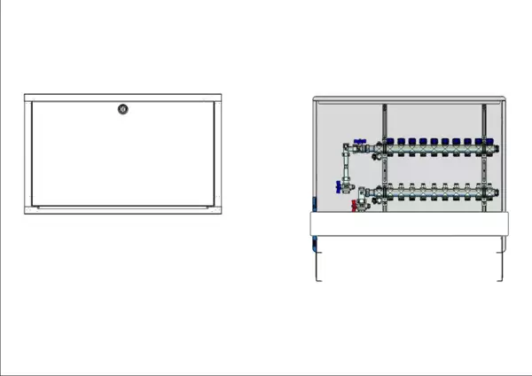 strawa FB-Anschlussstation H 53-WMZ 10 Hkr.,BxHxT: 900x725x122 mm, vert. AG m. WMZ, Verteiler mit Regulierventil + THV M30x1,5, Standard-UP-Schrank mit Frontblende in RAL 9016