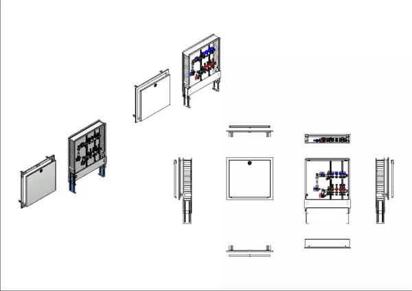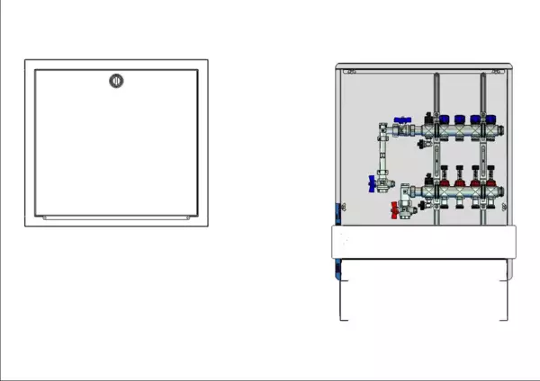 strawa FB-Anschlussstation H 63-WMZ 4 Hkr.,BxHxT: 515x725x122 mm, vert. AG. m. WMZ, Verteiler mit DFA 0-3 l/min + THV M30x1,5, Standard-UP-Schrank mit Frontblende in RAL 9016