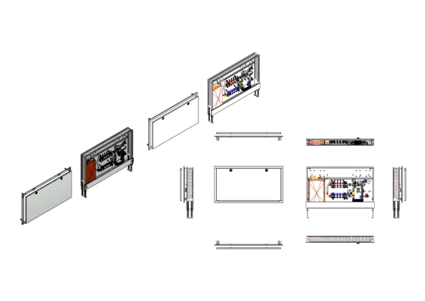 strawa Comfort-Mischstation FBM-S10-63-H-C69 5 Hkr.,BxHxT: 1200x775x122 mm, Systemtr. m. Mischg. m 3P SM + Pumpe, horz. AG o. WMZ, Verteiler mit DFA 0-3 l/min + THV M30x1,5, Comfort-UP-Schrank m. Frontbl. RAL 9016