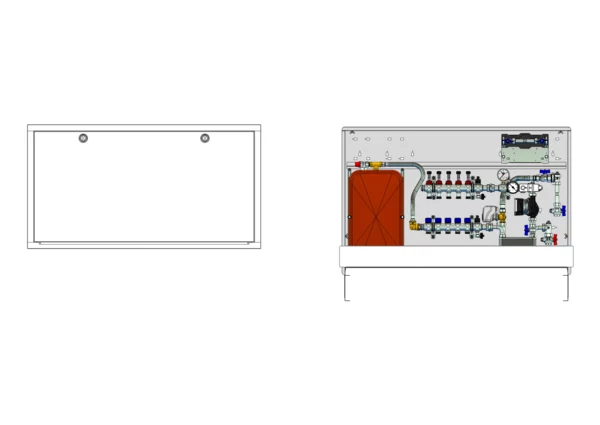 strawa Comfort-Mischstation FBM-S10-63-V-W1-WMZ-C69 5 Hkr.,BxHxT: 1200x775x122 mm, Systemtr. m. Mischg. m 3P SM+Pumpe, vert. AG m. WMZ, Verteiler mit DFA 0-3 l/min + THV M30x1,5, WZ-TW kalt, Comfort-UP-Schrank m. Frontbl. RAL 9016