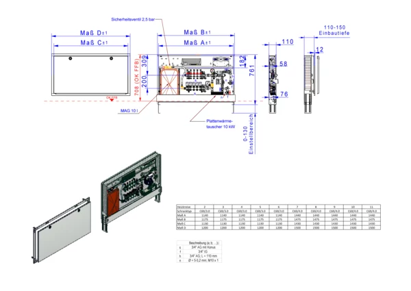 strawa Comfort-Mischstation FBM-S10-63-V-W1-WMZ-C69-E 7 Hkr.,BxHxT: 1500 x 775 x 122 mm, Systemtr. m. Mischg. m 3P SM+Pum, vert. AG m. WMZ, Verteiler m DFA 0-3+THV M30x1,5, vorm. Stellantr.+Klemml.+Vorverdr., WZ-TW kalt, CUP-Schrank m. Frontbl. RAL 9016