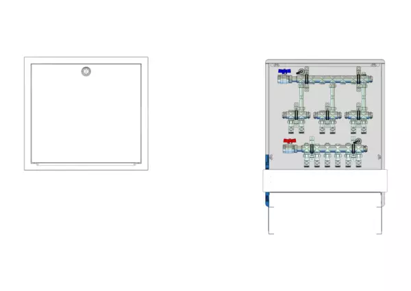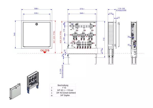 strawa Wohnungsanschlussstation WA 3/2 WMZ,BxHxT: 600 x 725 x 122 mm, horiz. AG, 2x Wärmezählerverrohrung 3/4" 110 mm, KH mit Fühleranschluss 5-5,2 im RL und Fühleranschluss 5-5,2 und Minikugelhahn im VL, im Standard-UP-Schrank RAL 9016