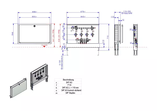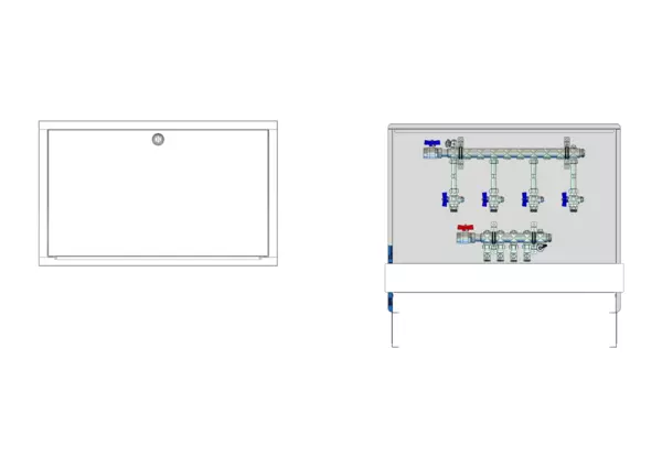 strawa Wohnungsanschlussstation WA 4/1 WMZ,BxHxT: 900 x 725 x 122 mm, horiz. AG, 2x Wärmezählerverrohrung 3/4" 110 mm, KH mit Fühleranschluss 5-5,2 im RL und Fühleranschluss 5-5,2 und Minikugelhahn im VL, im Standard-UP-Schrank RAL 9016