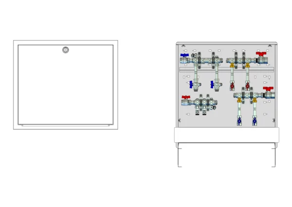 strawa Wohnungsanschlussstation WA VA-W4-WMZ2,BxHxT: 750 x 725 x 122 mm, horizontale AG, 2x WMZ 3/4" 110 mm, 2x W2 für Trinkwasser kalt u. warm, im Comfort-UP-Schrank RAL 9016
