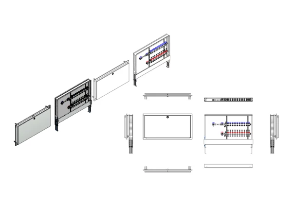 strawa FB-Anschlussstation H 63h-WMZ 10 Hkr.,BxHxT: 1050x725x92 mm, horiz. AG. m. WMZ, Verteiler mit DFA 0-3 l/min + THV M30x1,5, Standard-UP-Schrank mit Frontblende in RAL 9016