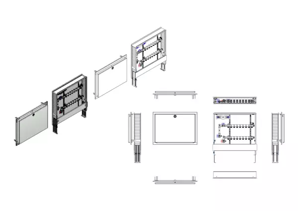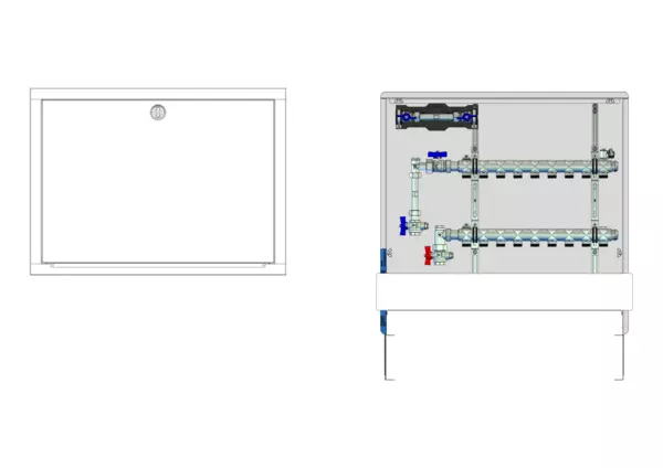 strawa HK-Anschlussstation H 52-W1-WMZ 9 Hkr.,BxHxT: 750x725x122 mm, vert. AG m. WMZ, Verteiler ohne Einbauten, Wasserzählerstr. TW kalt, Standard-UP-Schrank mit Frontblende in RAL 9016