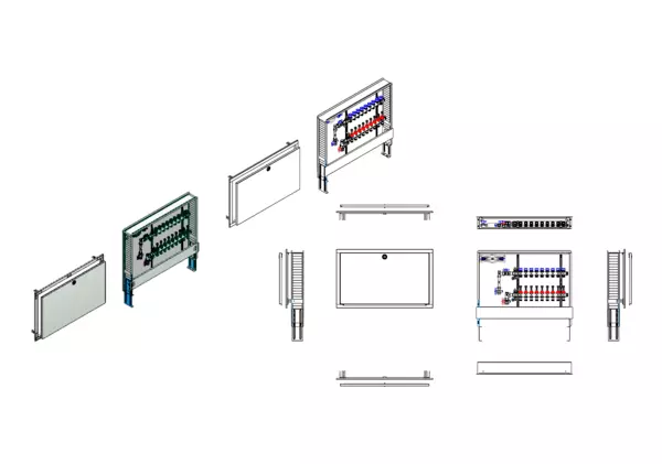 strawa FB-Anschlussstation H 63-W1-WMZ 9 Hkr.,BxHxT: 900x725x122 mm, vert. AG. m. WMZ, Verteiler m. DFA 0-3 l/min + THV M30x1,5, Wasserzählerstr. TW kalt, Standard-Schrank m. Frontbl. in RAL 9016