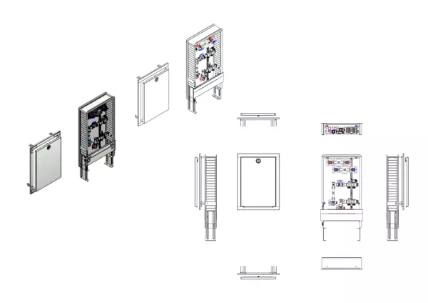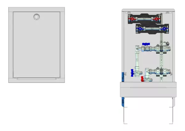 strawa HK-Anschlussstation H 52-W2-WMZ 2 Hkr.,BxHxT: 410x725x122 mm, vert. AG m. WMZ, Verteiler ohne Einbauten, Wasserzählerstr. TW kalt und warm, Standard-UP-Schrank mit Frontblende in RAL 9016