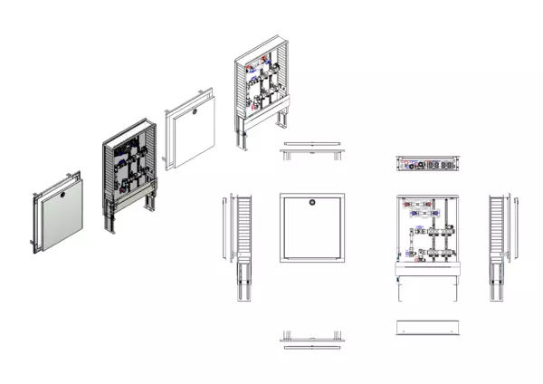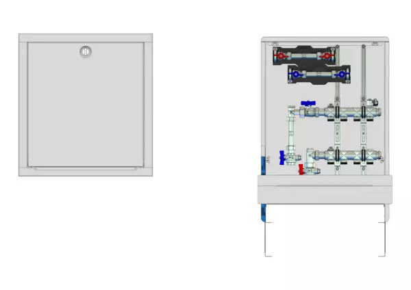 strawa HK-Anschlussstation H 52-W2-WMZ 4 Hkr.,BxHxT: 515x725x122 mm, vert. AG m. WMZ, Verteiler ohne Einbauten, Wasserzählerstr. TW kalt und warm, Standard-UP-Schrank mit Frontblende in RAL 9016