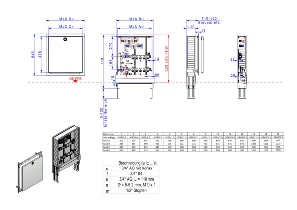 strawa HK-Anschlussstation H 52-W2-WMZ 7 Hkr.,BxHxT: 750 x 725 x 122 mm, vert. AG m. WMZ, Verteiler ohne Einbauten, Wasserzählerstr. TW kalt und warm, Standard-UP-Schrank mit Frontblende in RAL 9016