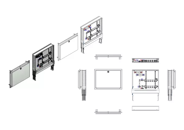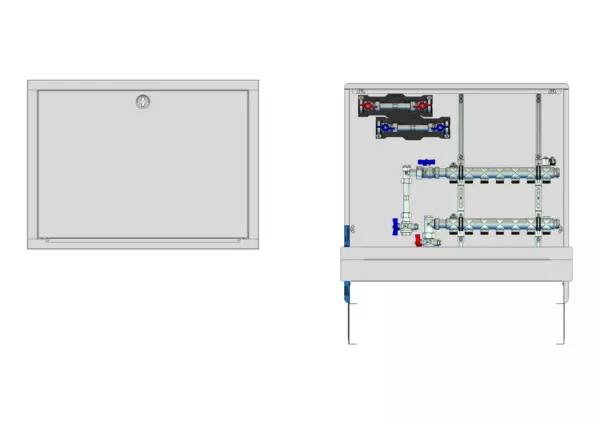 strawa HK-Anschlussstation H 52-W2-WMZ 7 Hkr.,BxHxT: 750x725x122 mm, vert. AG m. WMZ, Verteiler ohne Einbauten, Wasserzählerstr. TW kalt und warm, Standard-UP-Schrank mit Frontblende in RAL 9016