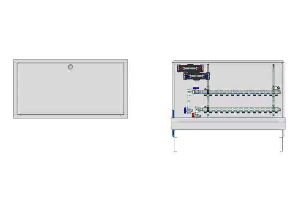 strawa HK-Anschlussstation H 52-W2-WMZ 14 Hkr.,BxHxT: 1050x725x122 mm, vert. AG m. WMZ, Verteiler ohne Einbauten, Wasserzählerstr. TW kalt und warm, Standard-UP-Schrank mit Frontblende in RAL 9016