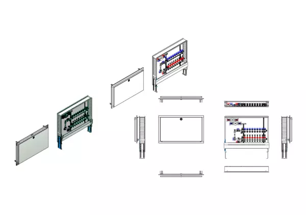 strawa FB-Anschlussstation H 63-W2-WMZ 9 Hkr.,BxHxT: 900x725x122 mm, vert. AG. m. WMZ, Verteiler m. DFA 0-3 l/min + THV M30x1,5, Wasserzählerstr. TW kalt und warm, Standard-Schrank m. Frontbl. in RAL 9016