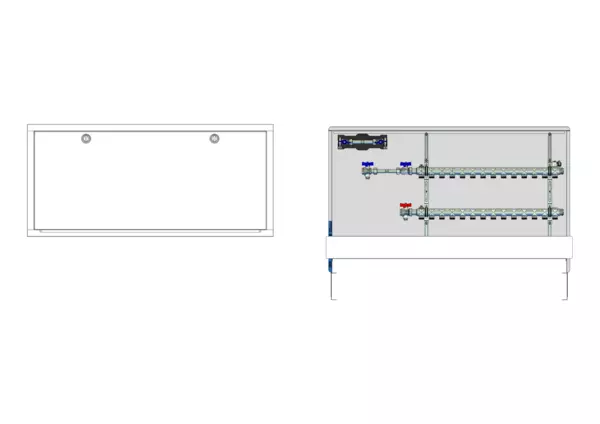 strawa HK-Anschlussstation H 52h-W1-WMZ 14 Hkr.,BxHxT: 1200x725x122 mm, horiz. AG m. WMZ, Verteiler ohne Einbauten, Wasserzählerstr. TW kalt, Standard-UP-Schrank mit Frontblende in RAL 9016