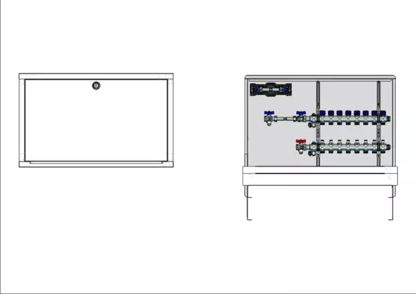 strawa FB-Anschlussstation H 53h-W1-WMZ 8 Hkr.,BxHxT: 900 x 725 x 122 mm, horiz. AG m. WMZ, Verteiler mit Regulierventil + THV M30x1,5, Wasserzählerstr. TW kalt, Standard-UP-Schrank mit Frontblende in RAL 9016