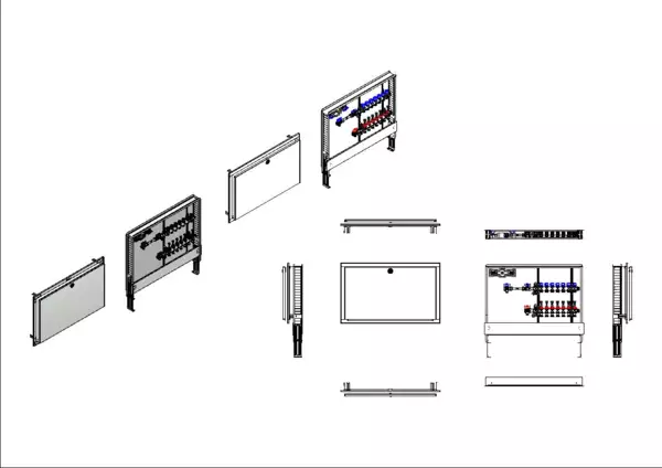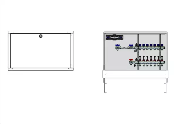 strawa FB-Anschlussstation H 63h-W1-WMZ 7 Hkr.,BxHxT: 900x725x92 mm, horiz. AG. m. WMZ, Verteiler mit DFA 0-3 l/min + THV M30x1,5, Wasserzählerstr. TW kalt, Standard-UP-Schrank mit Frontblende in RAL 9016