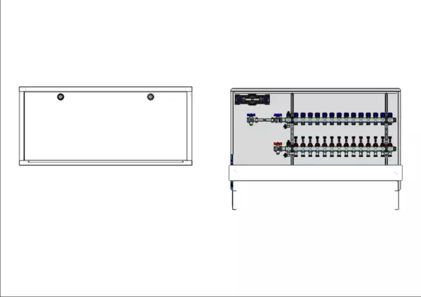 strawa FB-Anschlussstation H 63h-W1-WMZ 14 Hkr.,BxHxT: 1200 x 725 x 92 mm, horiz. AG. m. WMZ, Verteiler mit DFA 0-3 l/min + THV M30x1,5, Wasserzählerstr. TW kalt, Standard-UP-Schrank mit Frontblende in RAL 9016