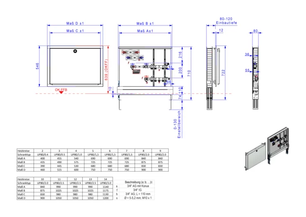strawa HK-Anschlussstation H 52h-W2-WMZ 6 Hkr.,BxHxT: 750 x 725 x 92 mm, horiz. AG m. WMZ, Verteiler ohne Einbauten, Wasserzählerstr. TW kalt und warm, Standard-UP-Schrank mit Frontblende in RAL 9016