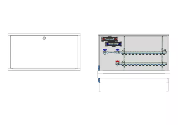 strawa HK-Anschlussstation H 52h-W2-WMZ 13 Hkr.,BxHxT: 1050x725x92 mm, horiz. AG m. WMZ, Verteiler ohne Einbauten, Wasserzählerstr. TW kalt und warm, Standard-UP-Schrank mit Frontblende in RAL 9016