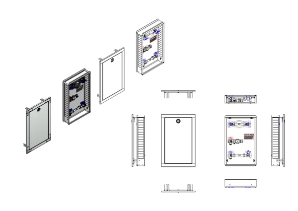 • zwei verstellbare Montageschienen an der Rückwand zur flexiblen Verteilerbefestigung