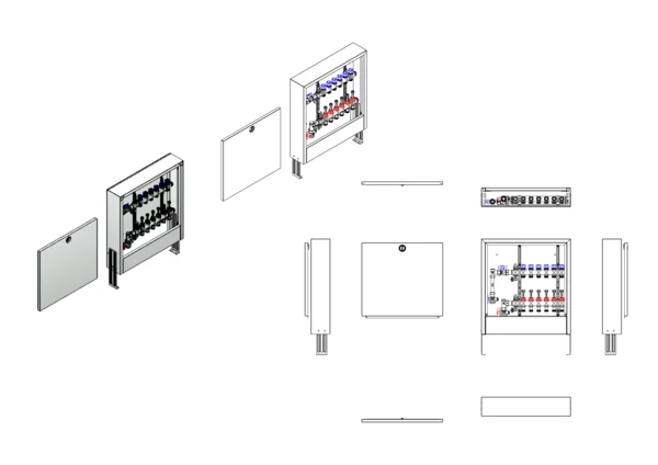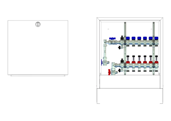 strawa FB-Anschlussstation H 63-WMZ-AP 6 Hkr.,BxHxT: 582x620x125 mm, vert. AG. m. WMZ, Verteiler mit DFA 0-3 l/min + THV M30x1,5, Standard-AP-Schrank in RAL 9016