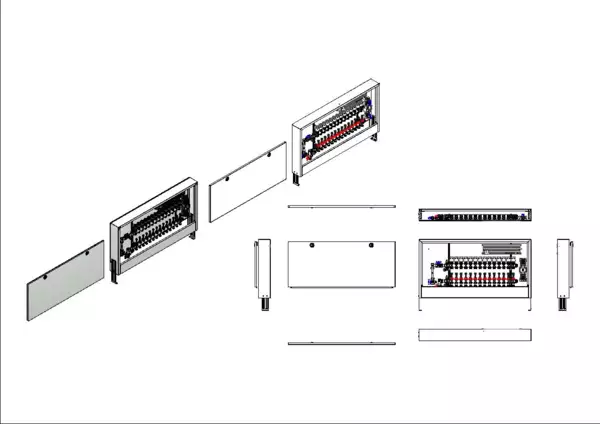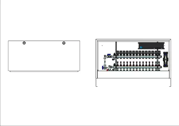 strawa FB-Anschlussstation H 63-W1-WMZ-AP-X 14 Hkr.,BxHxT: 1182x620x125 mm, vert. AG. m. WMZ, Verteiler mit DFA 0-3 l/min + THV M30x1,5, vorm. Stellantr. + Klemml. m. Vorverdraht., Wasserzählerstr. TW kalt, Standard-AP-Schrank in RAL 9016