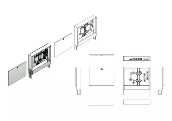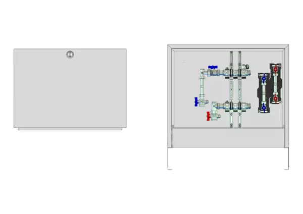 strawa HK-Anschlussstation H 52-W2-WMZ-AP 3 Hkr.,BxHxT: 732x620x125 mm, vert. AG m. WMZ, Verteiler ohne Einbauten, Wasserzählerstr. TW kalt u. warm, Standard-AP-Schrank in RAL 9016