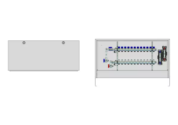 strawa FB-Anschlussstation H 53-W2-WMZ-AP 12 Hkr.,BxHxT: 1182x620x125 mm, vert. AG m. WMZ, Verteiler mit Regulierventil + THV M30x1,5, Wasserzählerstr. TW kalt u. warm, Standard-AP-Schrank in RAL 9016