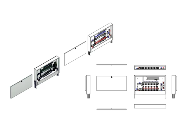 strawa FB-Anschlussstation H 63-W2-WMZ-AP-X 10 Hkr.,BxHxT: 1032x620x125 mm, vert. AG. m. WMZ, Verteiler mit DFA 0-3 l/min + THV M30x1,5, vorm. Stellantr. + Klemml. m. Vorverdraht., Wasserzählerstr. TW kalt u. warm, Standard-AP-Schrank in RAL 9016