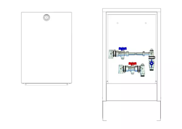Die Wohnungsanschlussstation ist mit einer Wärmezählervorbereitung, sowie einem vertikalen Primär- und Sekundäranschluss im Aufputzschrank ausgestattet.