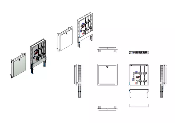 strawa HK-Anschlussstation H 52-WMZ-80 4 Hkr.,BxHxT: 515x725x92 mm, vert. AG m. WMZ, Verteiler ohne Einbauten, Standard-UP-Schrank mit Frontblende in RAL 9016