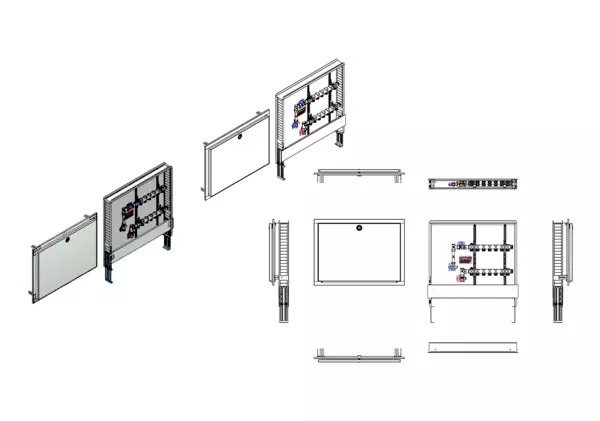 strawa HK-Anschlussstation H 52-WMZ-80 7 Hkr.,BxHxT: 750x725x92 mm, vert. AG m. WMZ, Verteiler ohne Einbauten, Standard-UP-Schrank mit Frontblende in RAL 9016