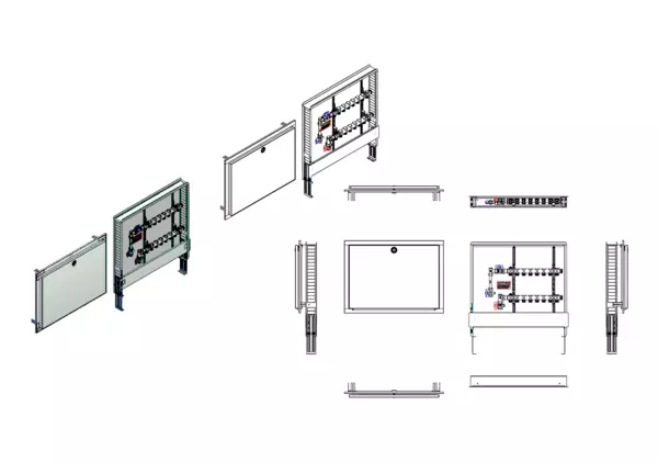 strawa HK-Anschlussstation H 52-WMZ-80 8 Hkr.,BxHxT: 750x725x92 mm, vert. AG m. WMZ, Verteiler ohne Einbauten, Standard-UP-Schrank mit Frontblende in RAL 9016