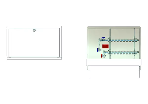strawa HK-Anschlussstation H 52-WMZ-80 10 Hkr.,BxHxT: 900x725x92 mm, vert. AG m. WMZ, Verteiler ohne Einbauten, Standard-UP-Schrank mit Frontblende in RAL 9016
