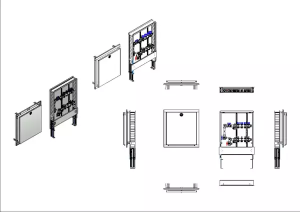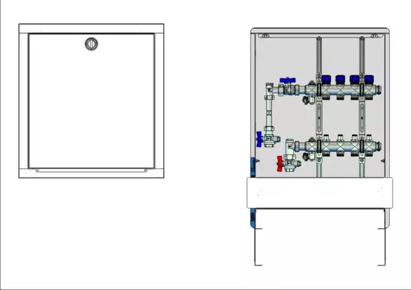strawa FB-Anschlussstation H 53-WMZ-80 4 Hkr.,BxHxT: 515x725x92 mm, vert. AG m. WMZ, Verteiler mit Regulierventil + THV M30x1,5, Standard-UP-Schrank mit Frontblende in RAL 9016
